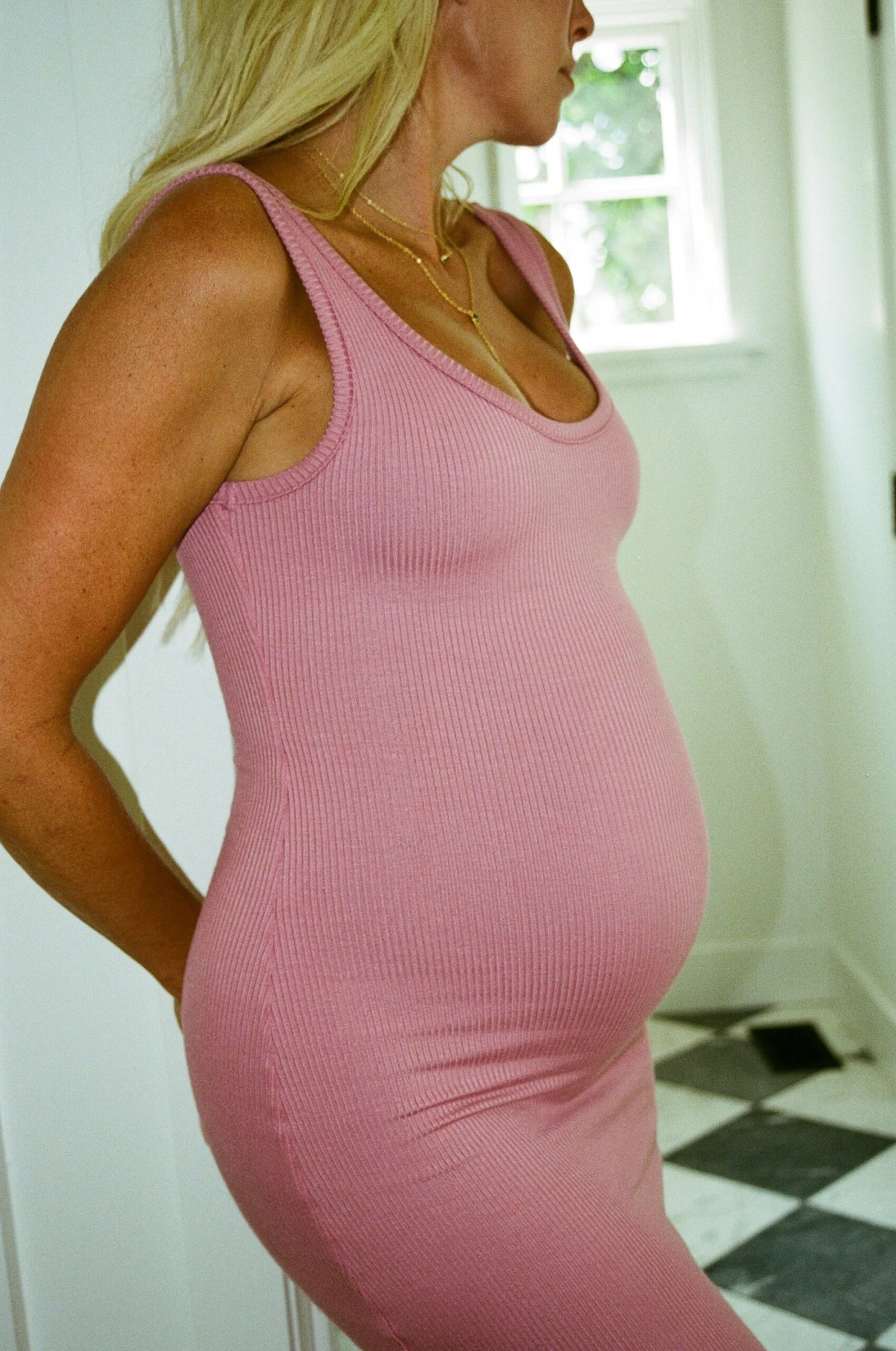 This dress was inspired by our Stephanie Tank. This midi dress update is double-lined in the front and her thick straps were designed to hide bra straps. She’s got a tight fitting silhouette that’s a long midi crop.Â