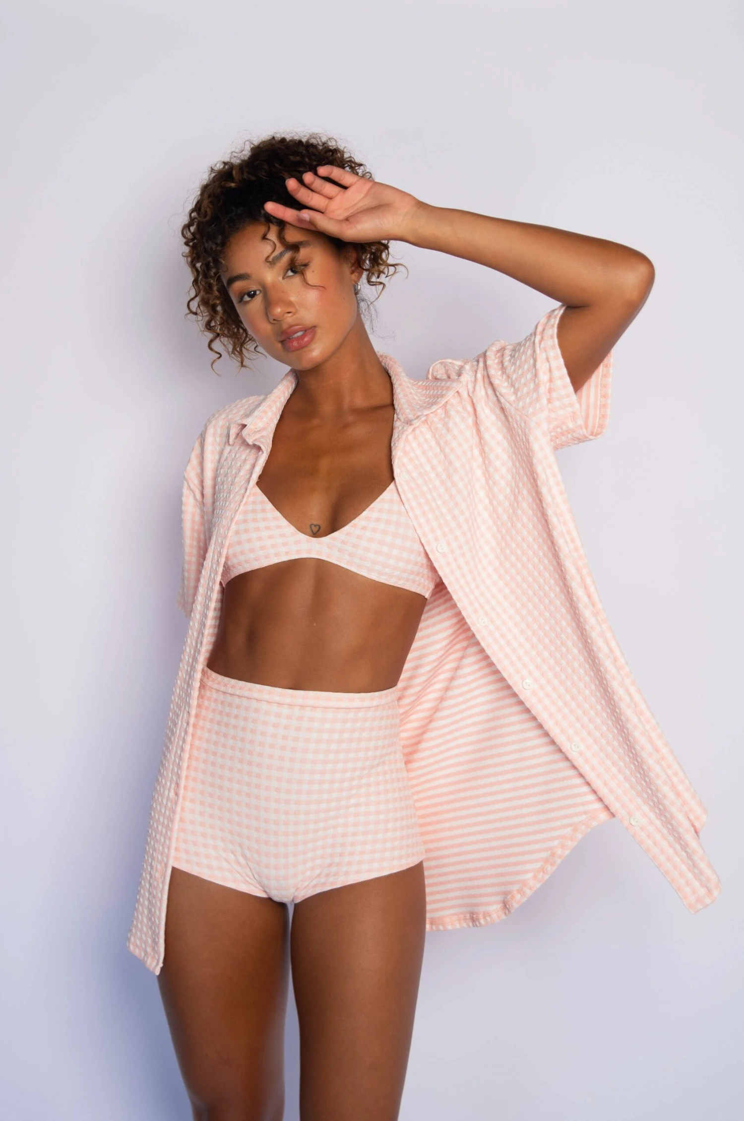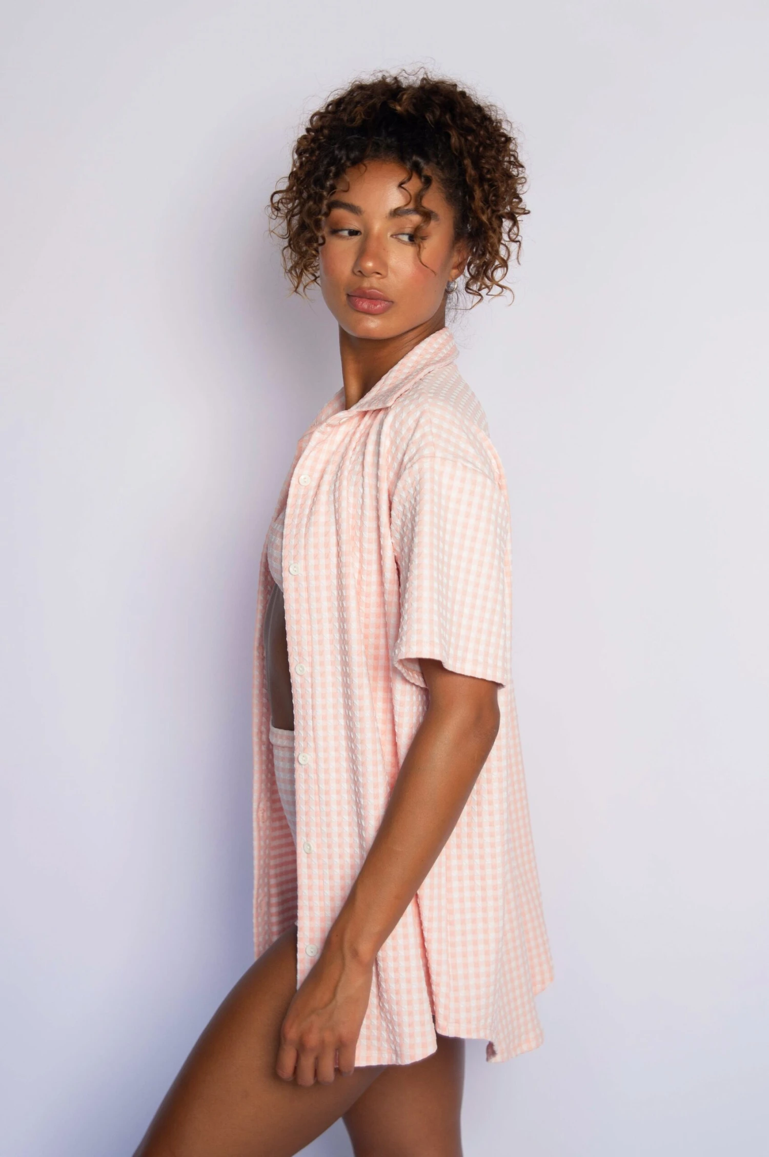 A short sleeve version of our Phoenix Button Down, Chase is the perfect menswear inspired shirt that’s long enough to be worn alone, but pairs perfectly with our Morgan pants for a super chic set.