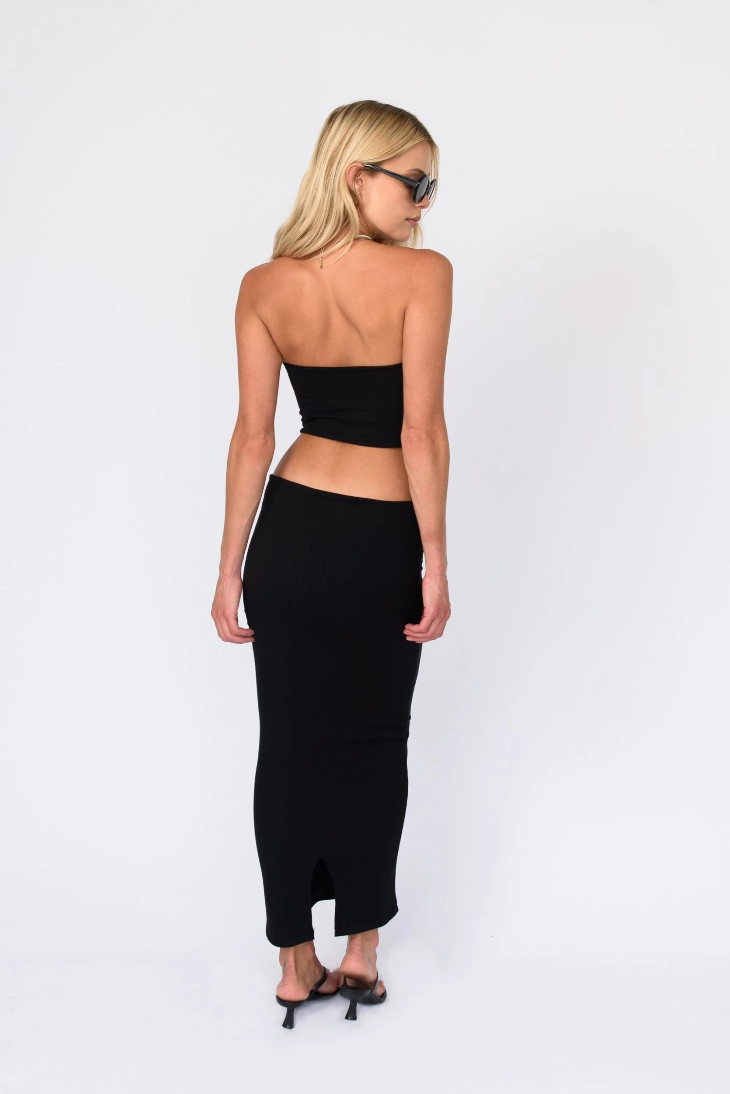 An update on our OG lounge skirt, Daisy is full length and tight fitting with a small slit in the back. We like to style her low waisted, but she’s snug enough to style her high waisted as well.