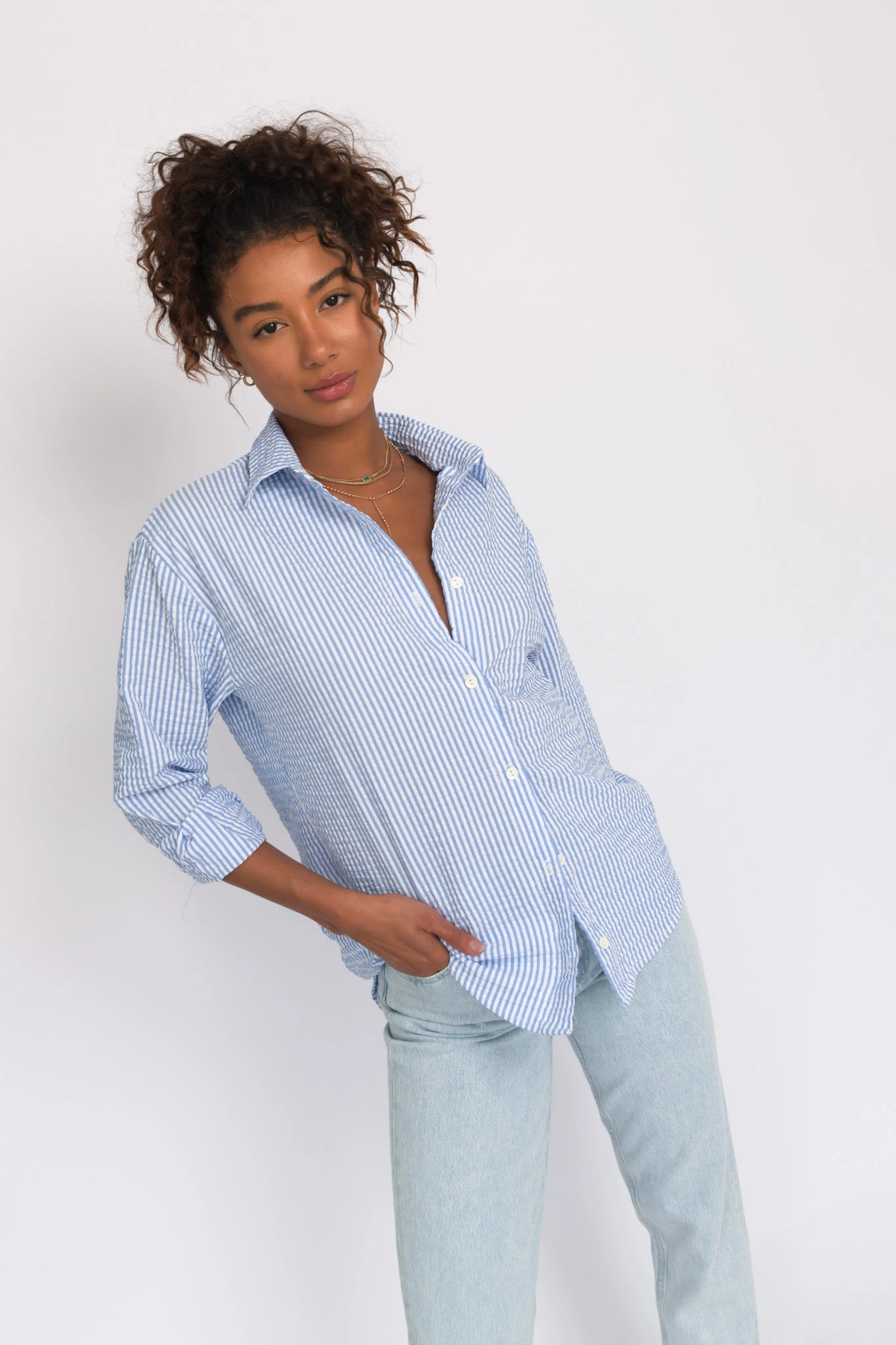 Harper is the perfect menswear-inspired shirt that’s long enough to be worn alone but pairs perfectly with our Brooks pants for a super chic set.