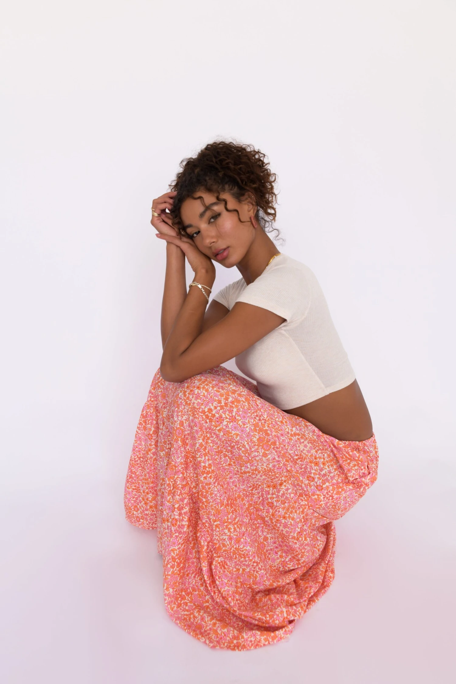 Kristina is super light and breezy. She’s the perfect throw on for those warm beach days or summer nights paired with any of our basic tops. We gave her an adjustable waistband so you can wear her low or high waist.