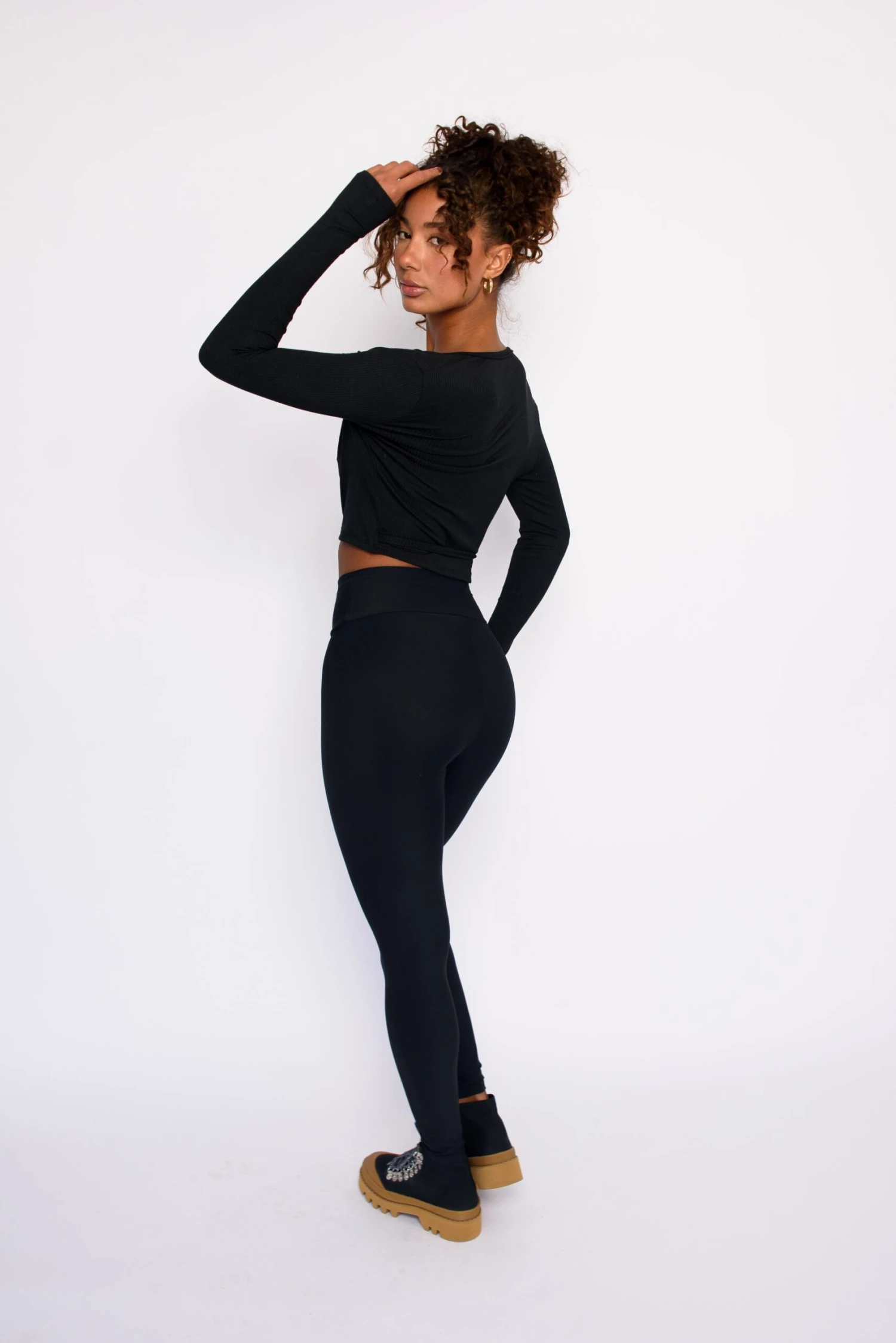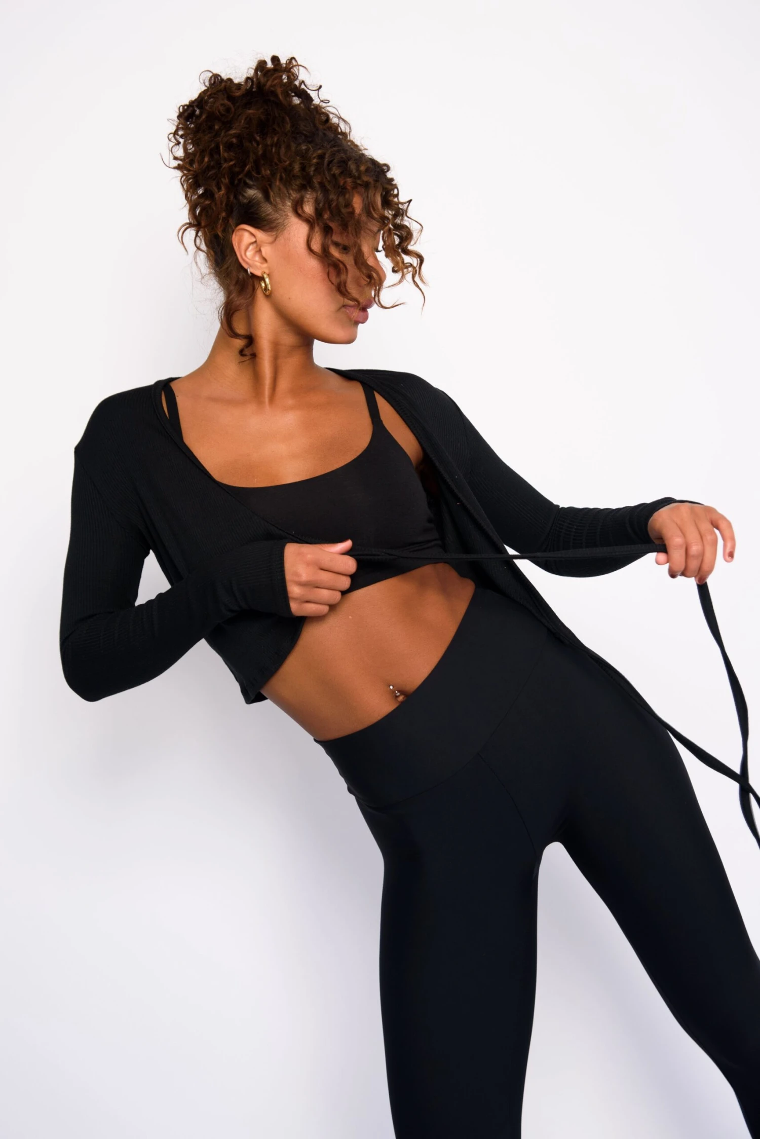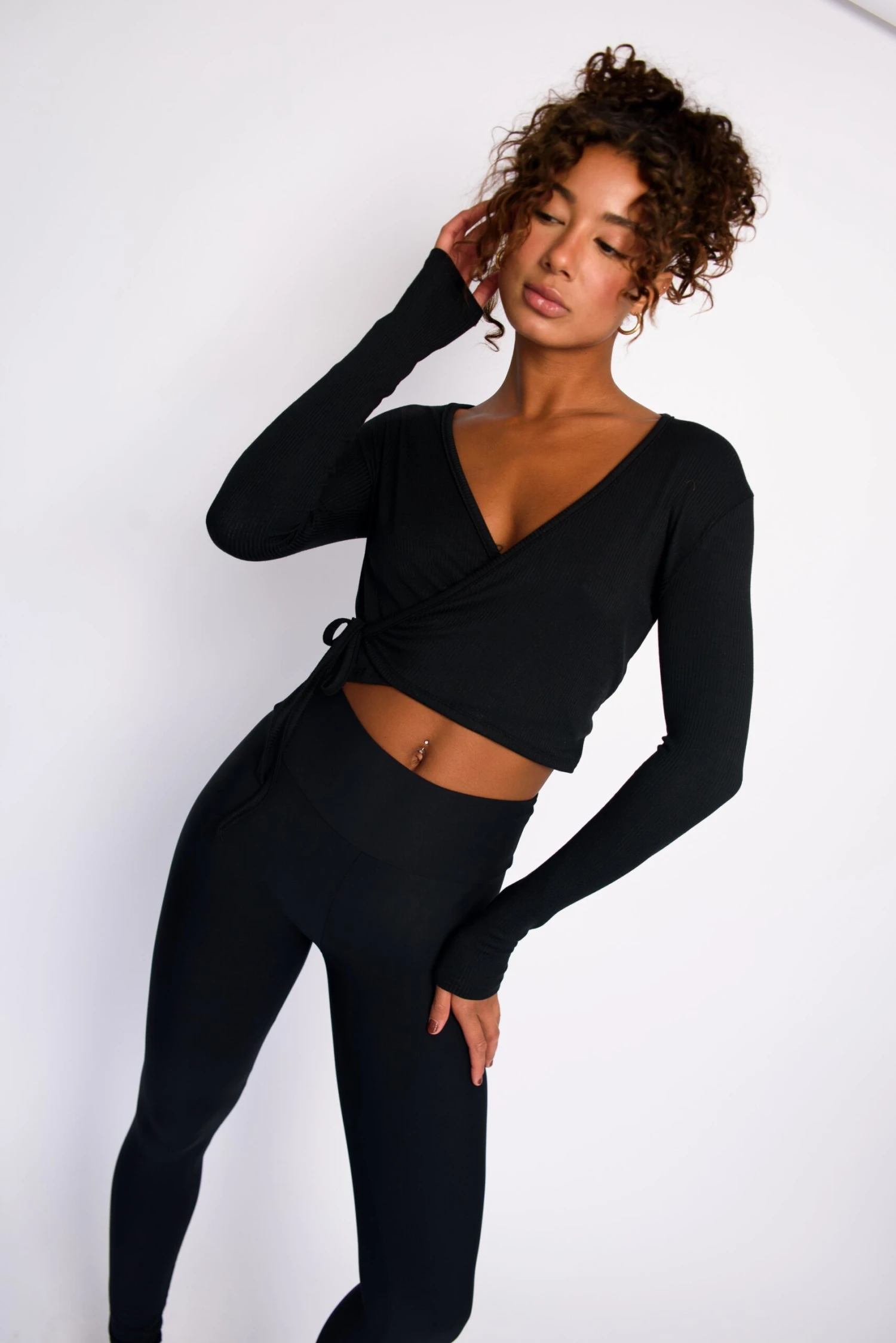 Inspired by a classic ballet wrap top, this ribbed long sleeve cardigan is kind of like a sweater and kind of like a shirt. Wrap it snug or wear it loose and cozy. For a looser fit we recommend you size up.