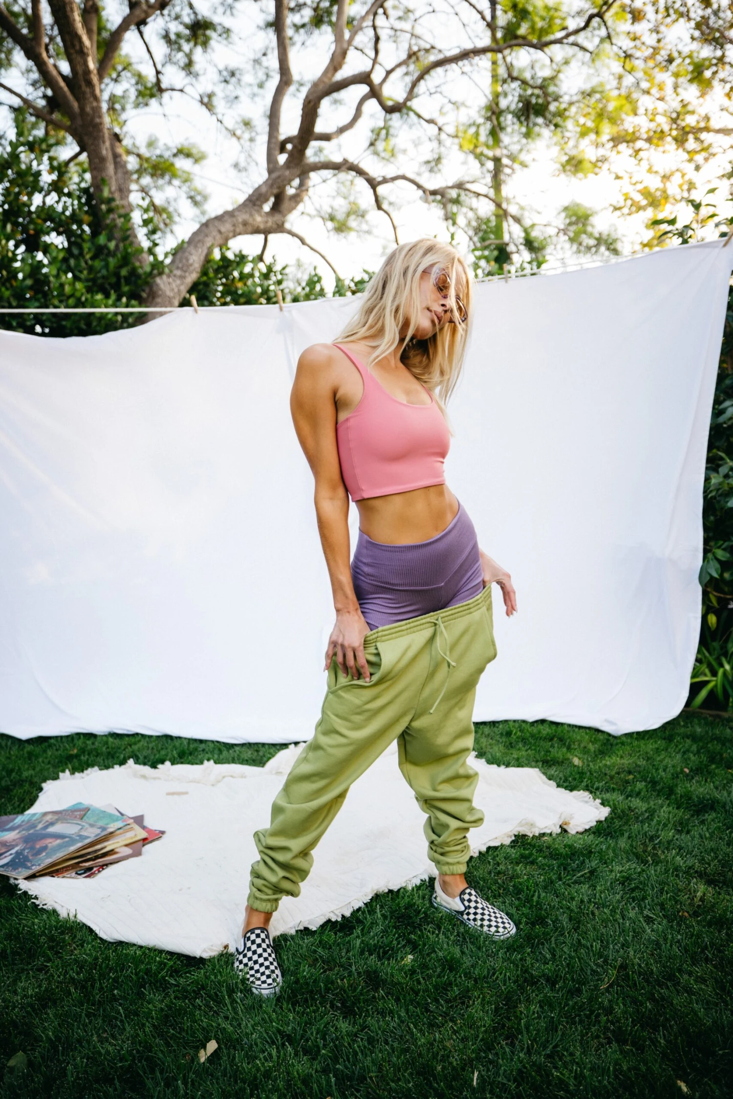 - Model Measurements: Height 5’7″, Waist 25″, Bust 32″, Hips 34″