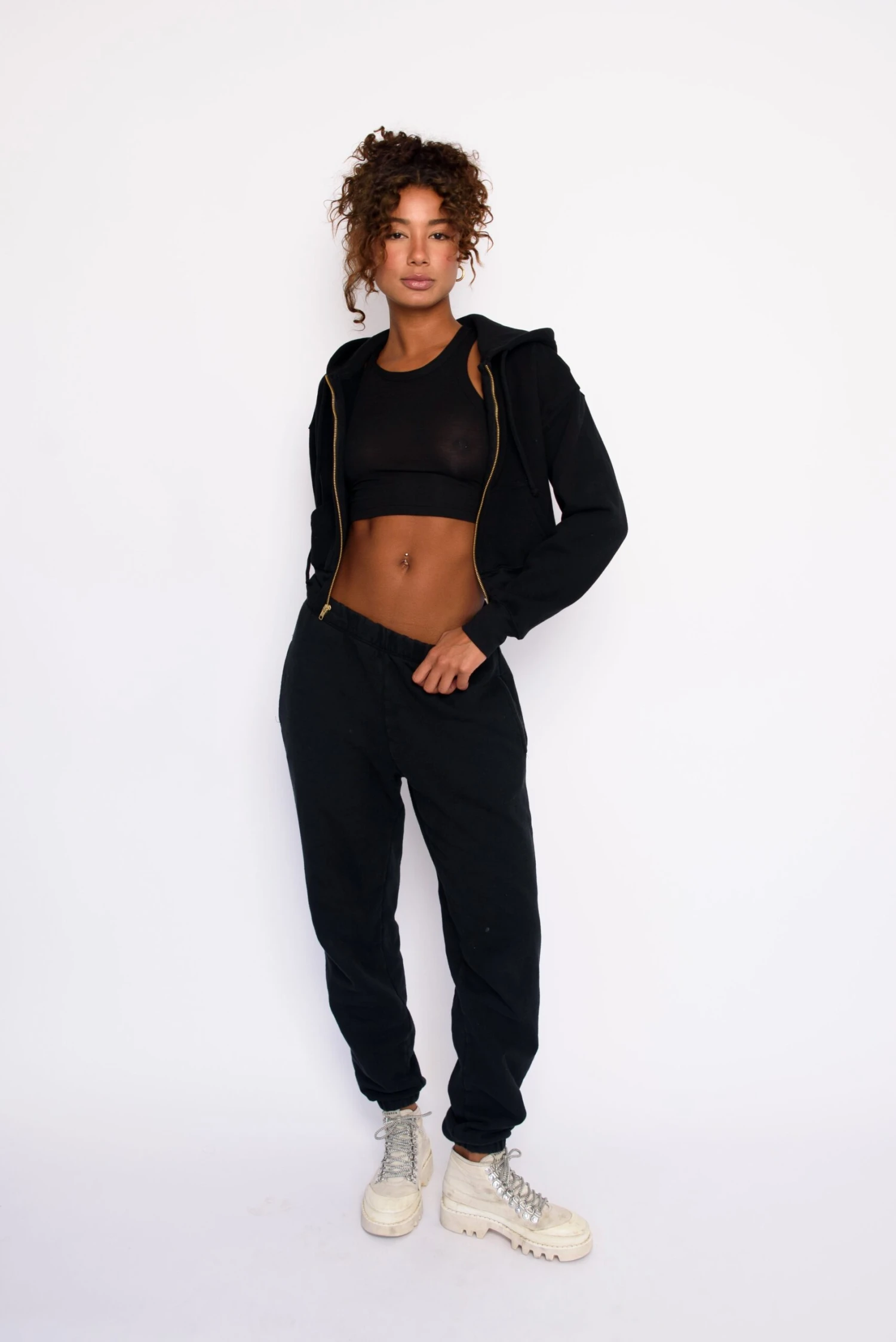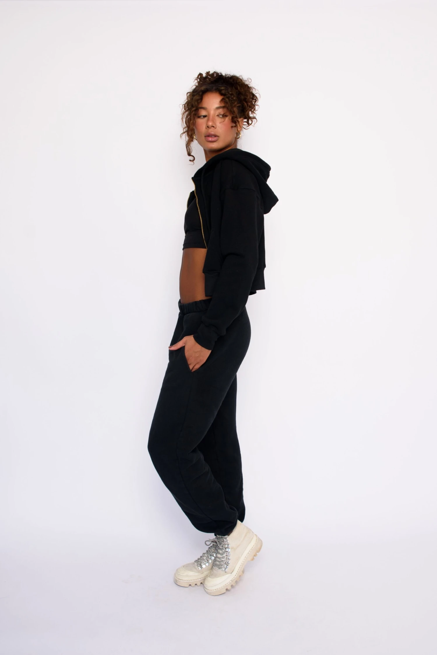 Made to be worn with the Lia Pant, Bryanna is the ultimate zip-up jacket. She’s cropped at the waist but her super soft baby pink velour means she’s still cozy. Plus, she’s like, really pretty.