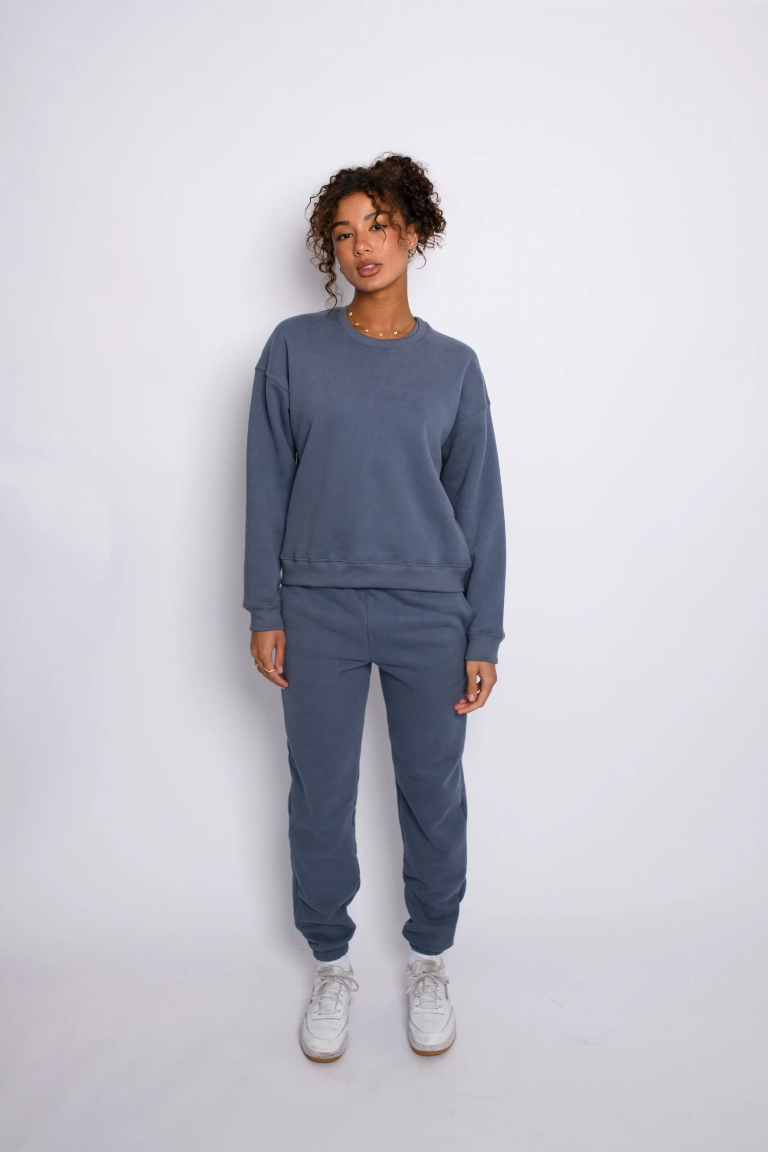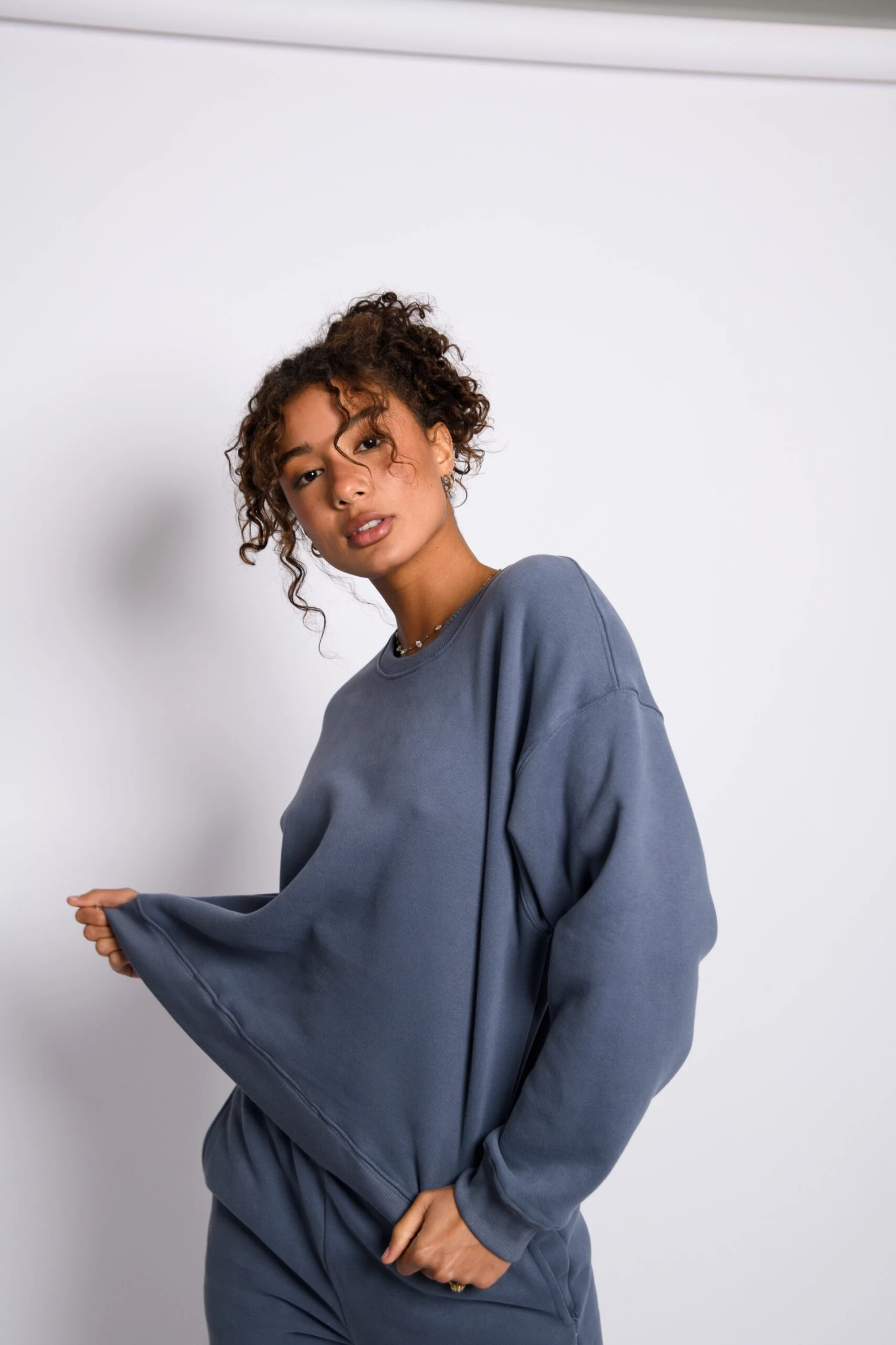 Chris is our oversized, cozy crewneck. The neck and cuffs are made with our ultra-soft ribbed fabric, and can be coordinated with any of our crops for a tonal look.